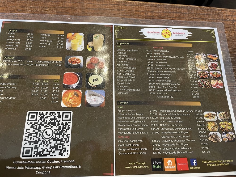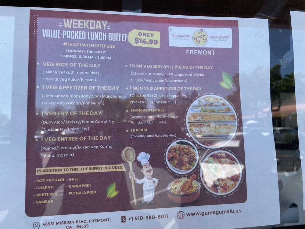 GumaGumalu, a South Indian restaurant located in Fremont, CA, offers a wide range of vegetarian and non-vegetarian options. With a diverse menu that includes Raagi Sankati, dosas, chicken curries, biryanis, and homemade sweets, this halal-certified eatery caters to all taste preferences. Customers rave about the garlic naan, vegetable korma, and gulab jamun, praising the flavorful dishes and generous portions. The casual ambiance, friendly service, and reasonable prices make GumaGumalu a great choice for family outings or group gatherings. Whether you're new to South Indian cuisine or a loyal customer, the weekend buffet is recommended for a full culinary experience. Don't miss out on the unique offerings like the nutella dosa and the attentive staff who ensure a pleasant dining experience. Visit GumaGumalu for an authentic taste of South India in the heart of Fremont.
